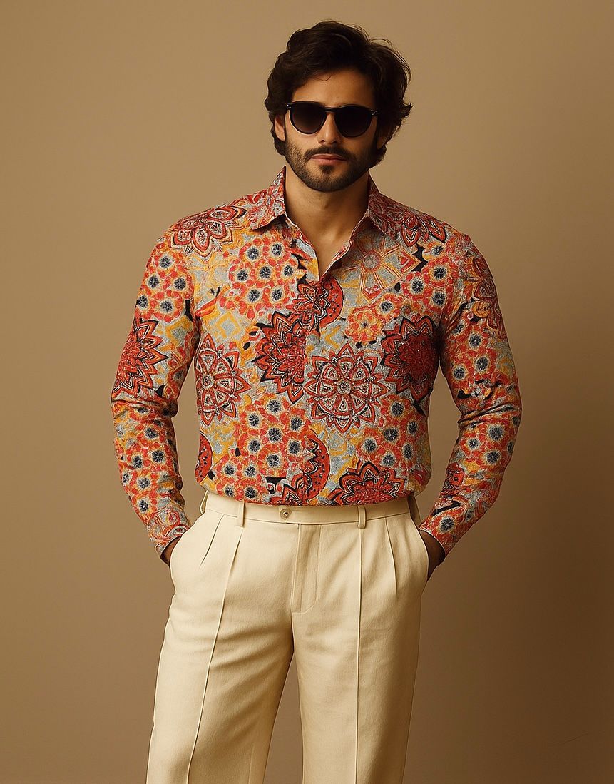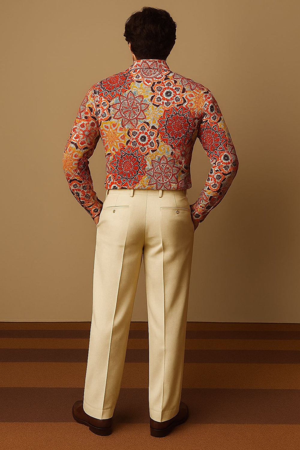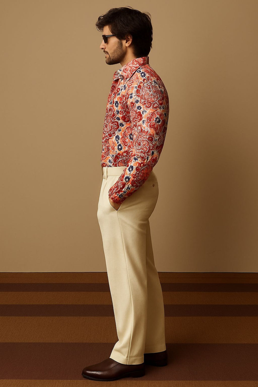 Beige Moda Full Sleeve Regular Fit Printed Shirt | For Men