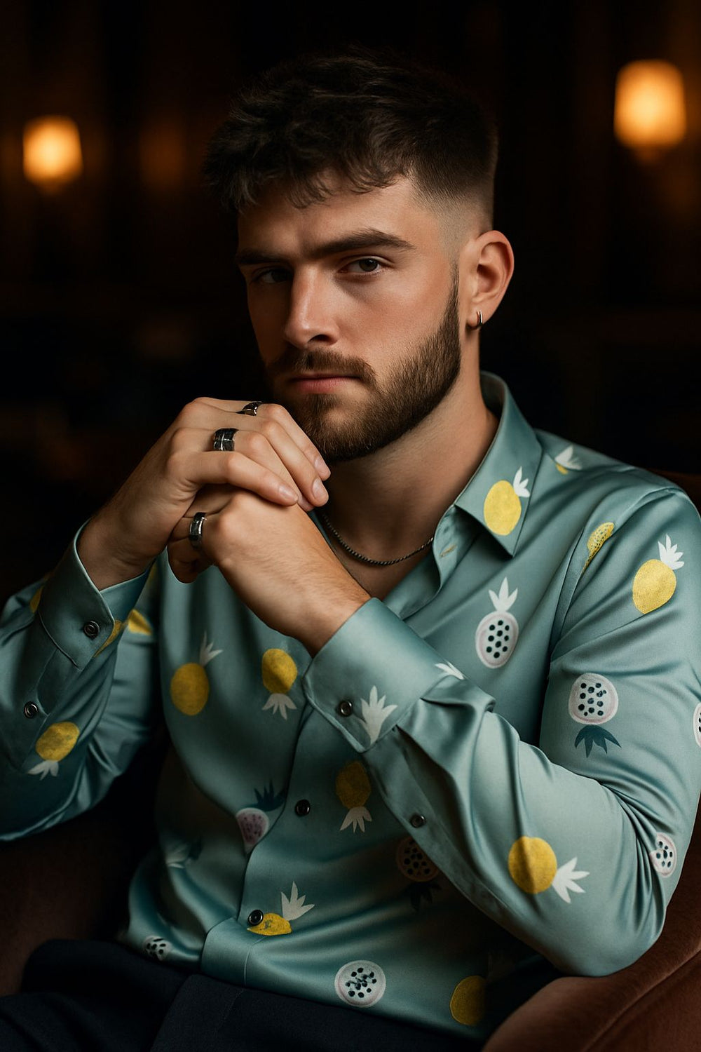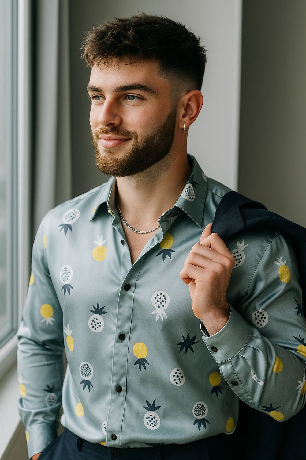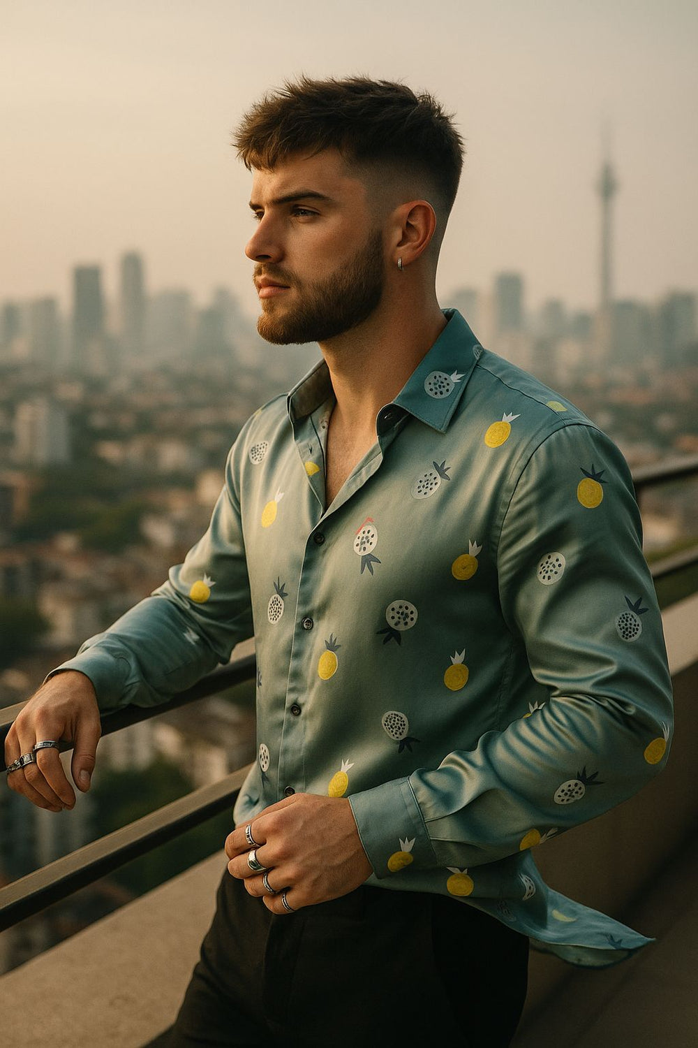 Lime Green Lycra Full Sleeve Regular Fit Printed Shirt | For Men