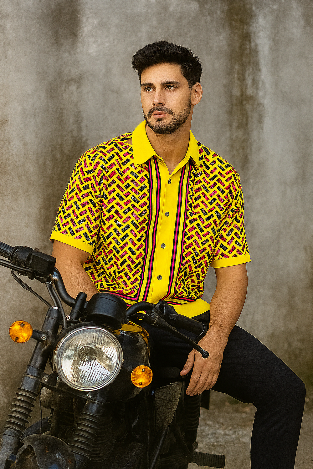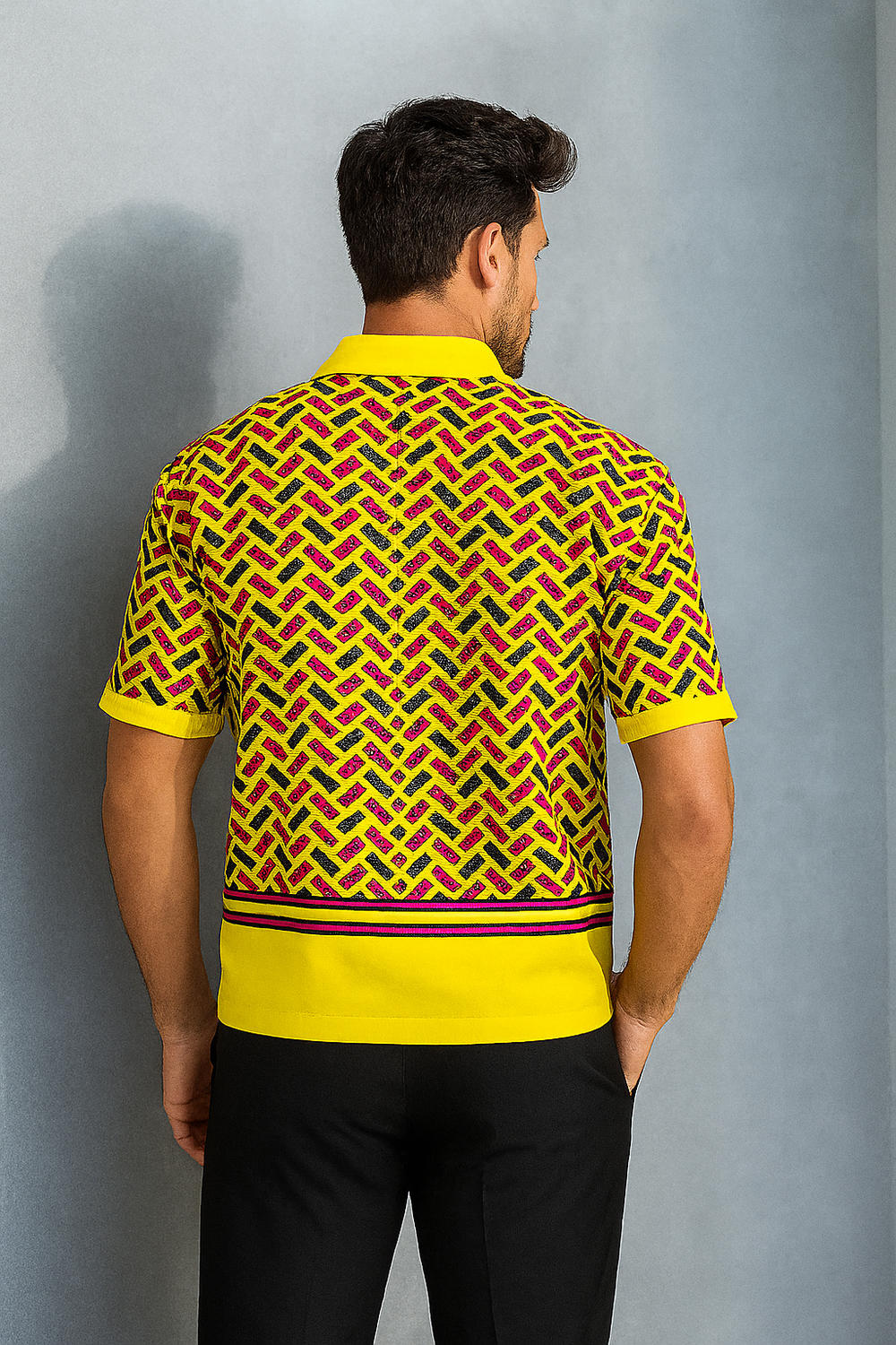 Luxury Geometric Print Premium Imported Shirt β Bold Yellow & Magenta