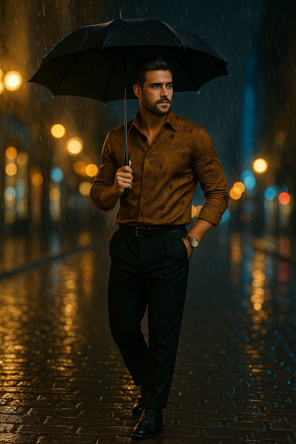 Turn heads with our Luxury Golden Brown Satin Men’s Shirt, a masterpiece of elegance and bold style. Crafted from high-shine premium satin, this shirt features a unique woodgrain-inspired pattern that exudes sophistication and individuality. The smooth, silky texture feels luxurious against the skin, while the tailored fit enhances your physique for a confident and commanding look. Perfect for royal evenings, high-profile parties, red-carpet events, or luxury dinners, this shirt is a statement piece for the modern gentleman who dares to stand out.
