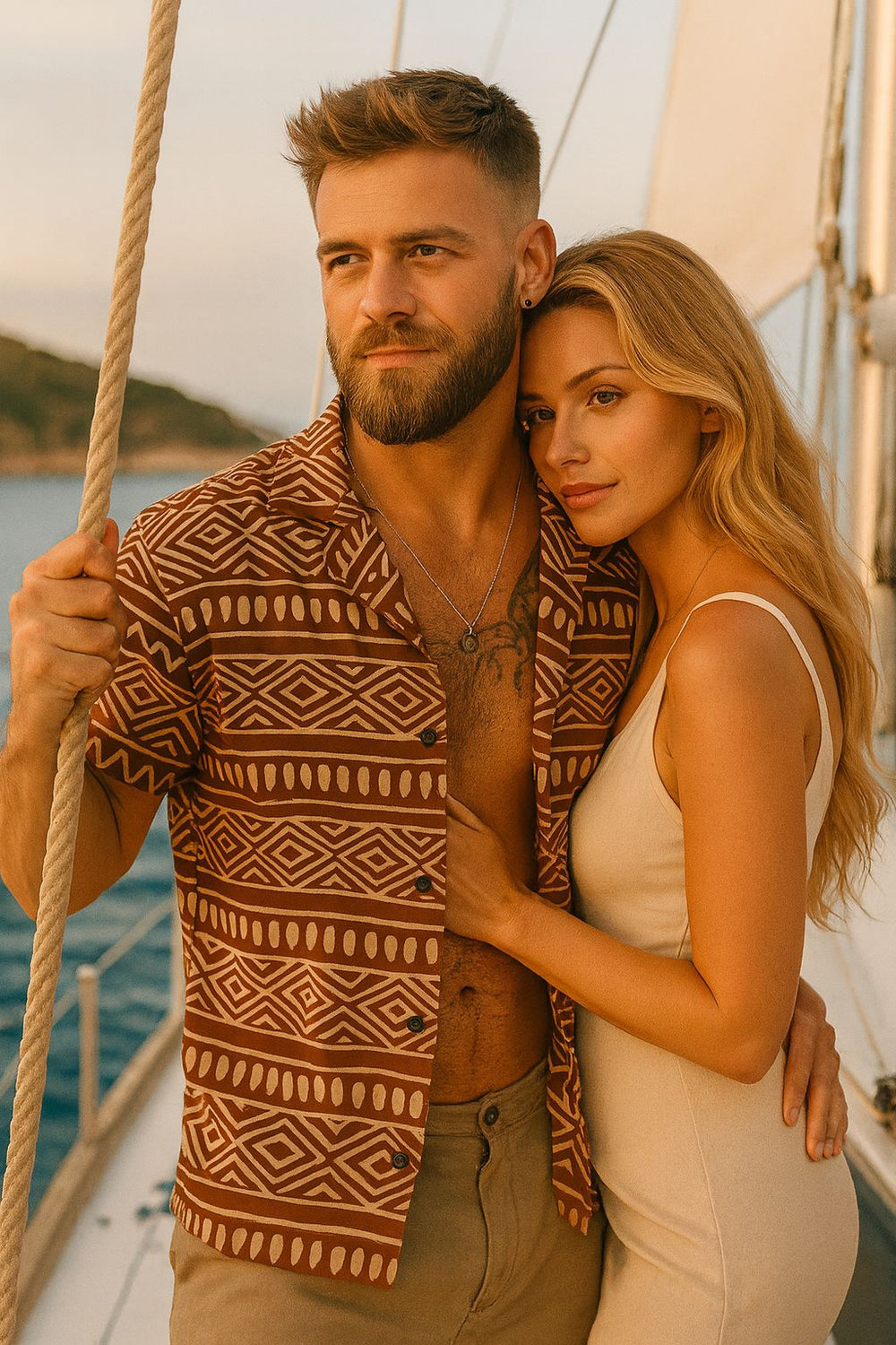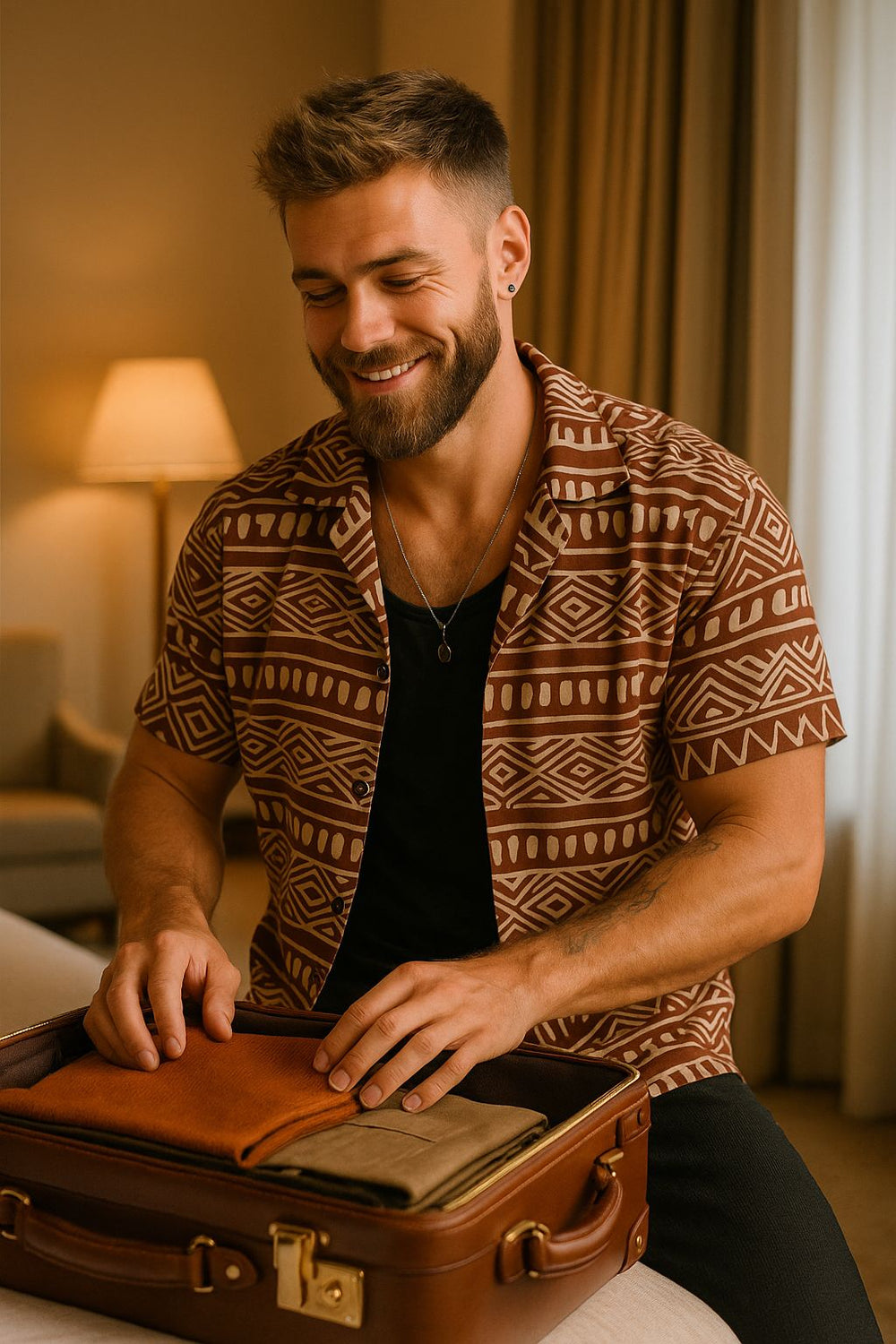 Step into effortless style with this Men’s Brown Tribal Print Casual Shirt—a perfect blend of comfort and bold design. Featuring an eye-catching tribal-inspired pattern, this short-sleeve shirt is crafted for relaxed days, beach vacations, or casual evenings out. Lightweight and breathable, it keeps you cool while making a strong fashion statement.