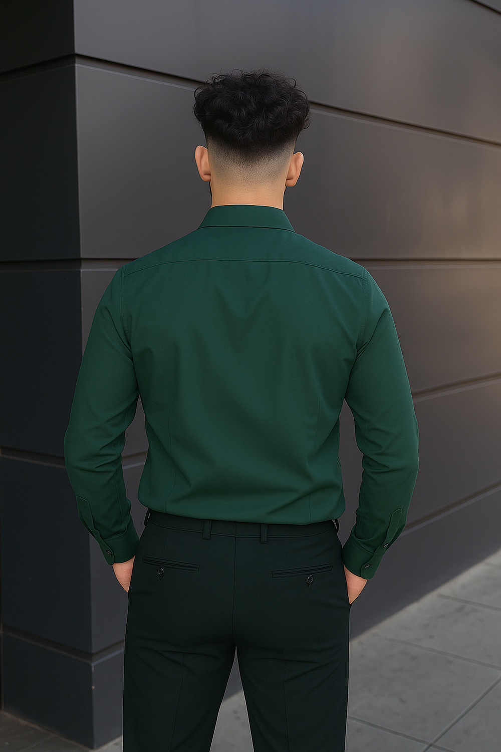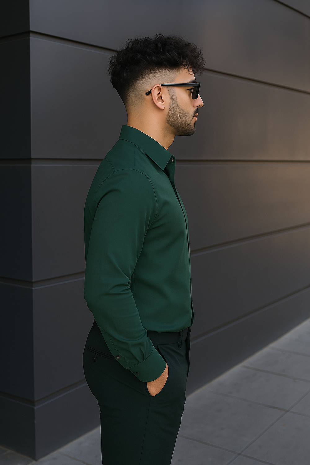 Rama Green Lycra Solid Shirt for Men โ Full Sleeve, Regular Fit, Premium Comfort