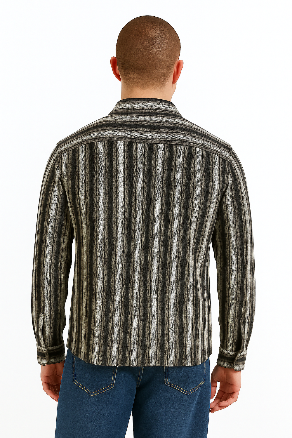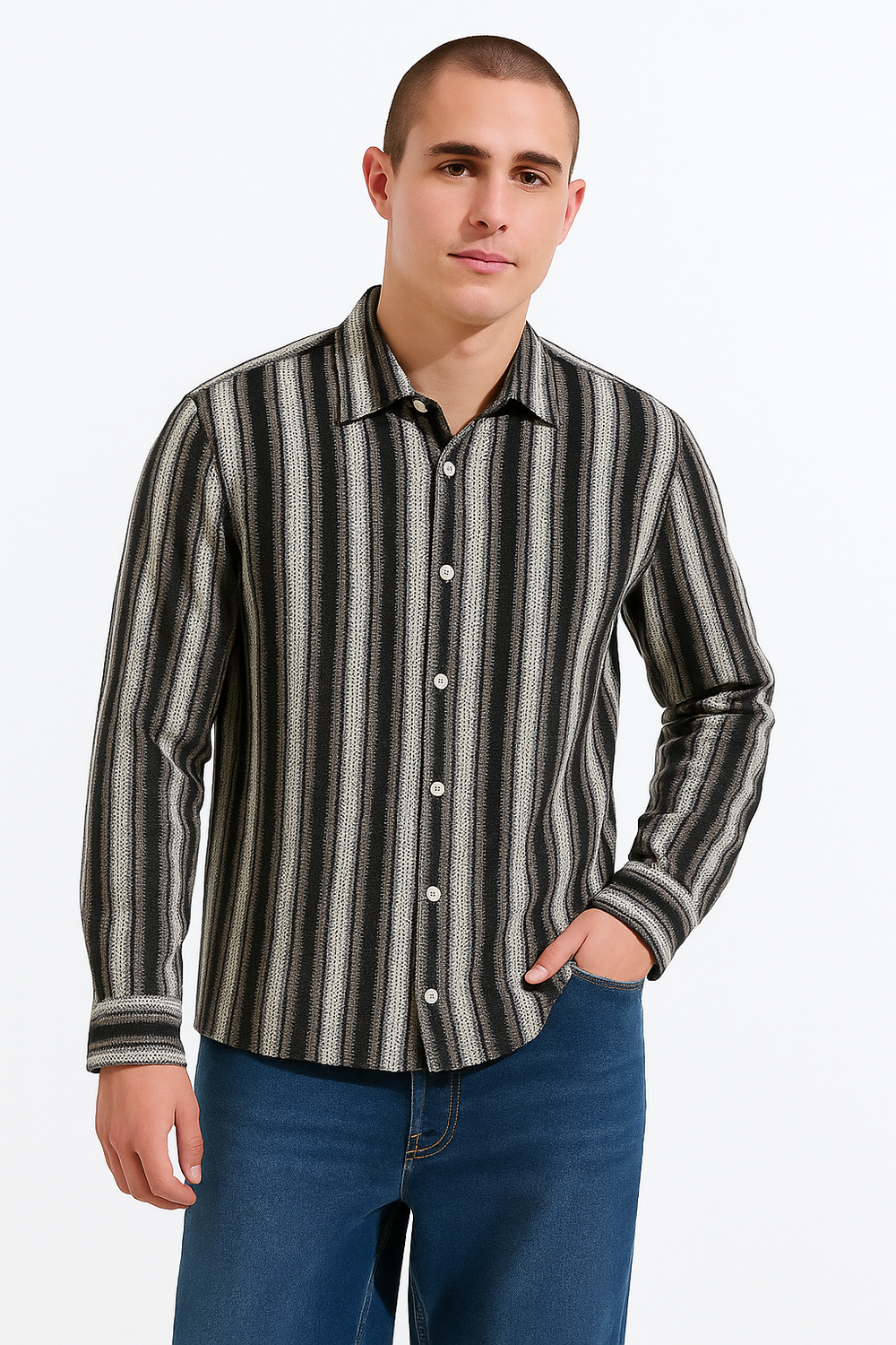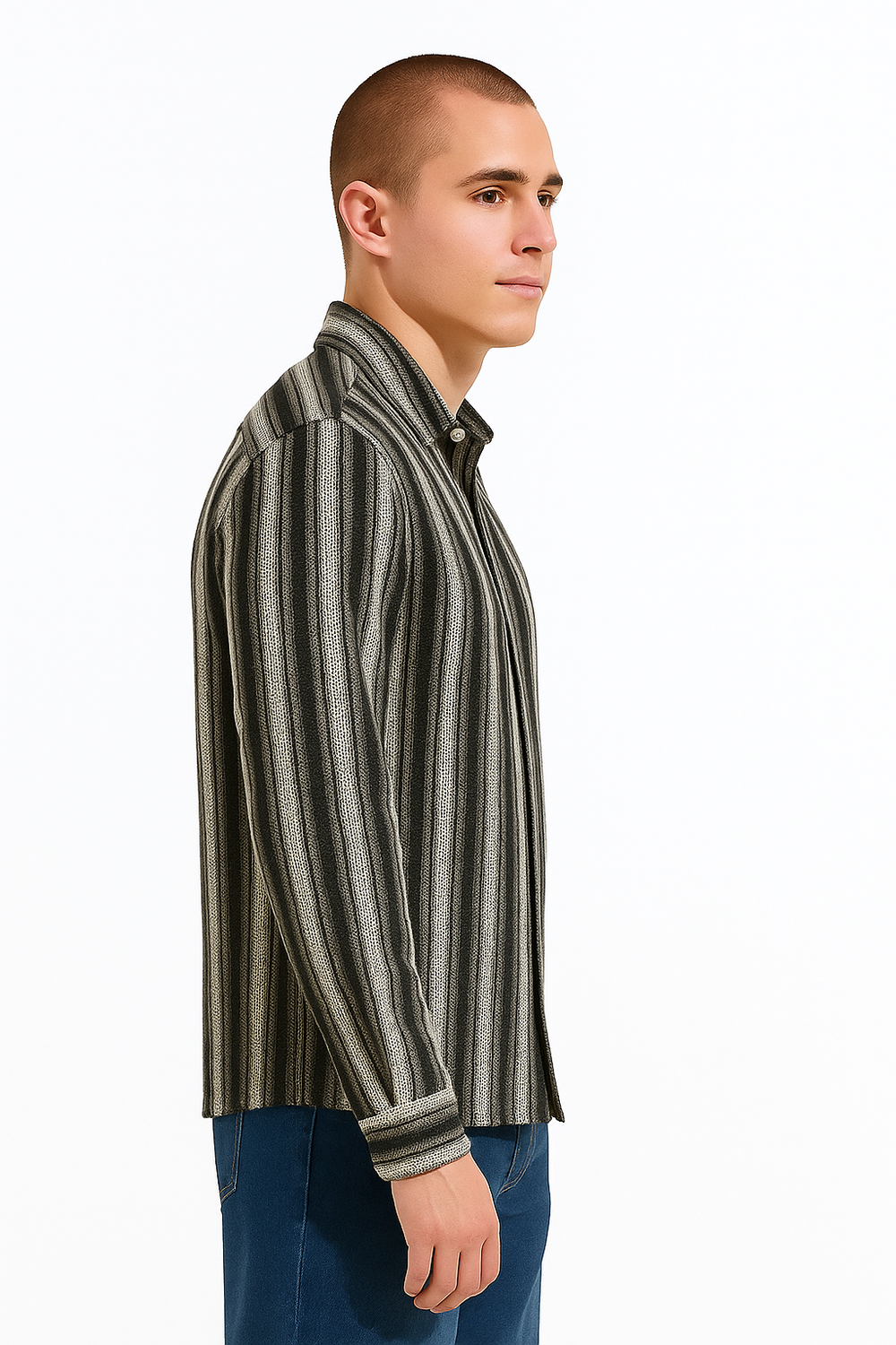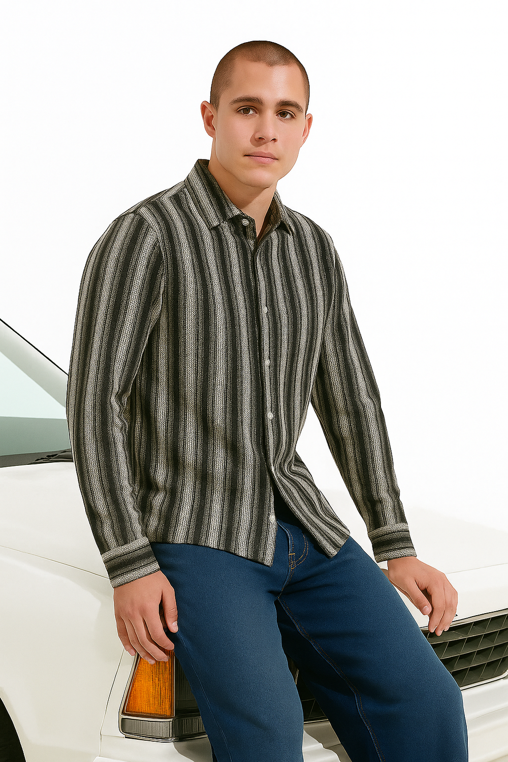Men’s Premium Striped Shirt – Black & Grey Full Sleeve Casual Shirt | 21 Inside
