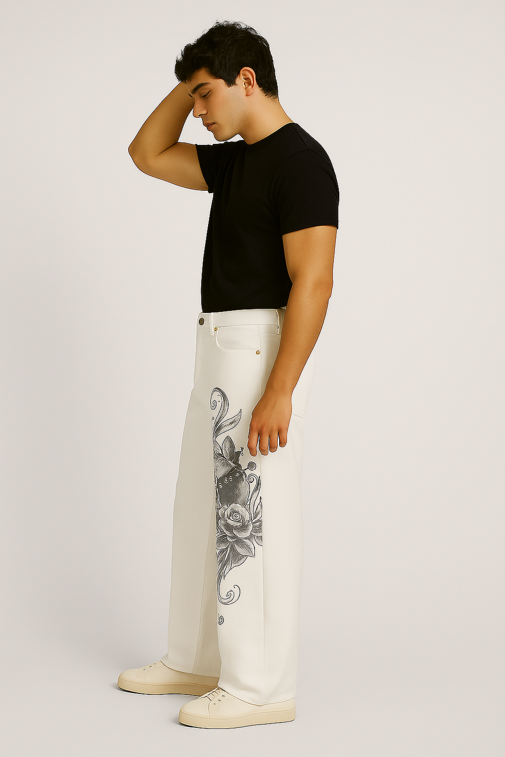 Men’s White Premium Printed Streetwear Denim Jeans for men | 21 Inside