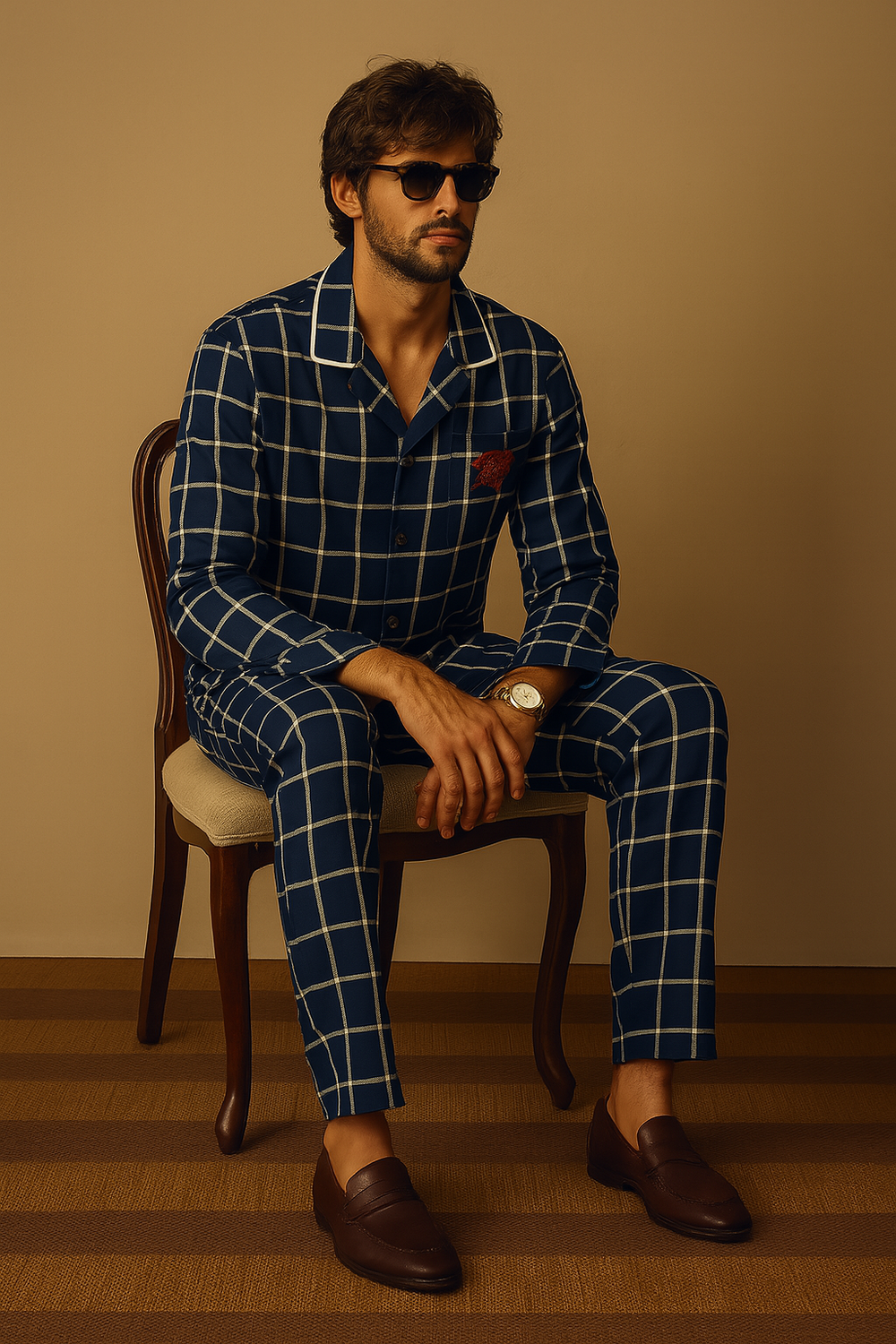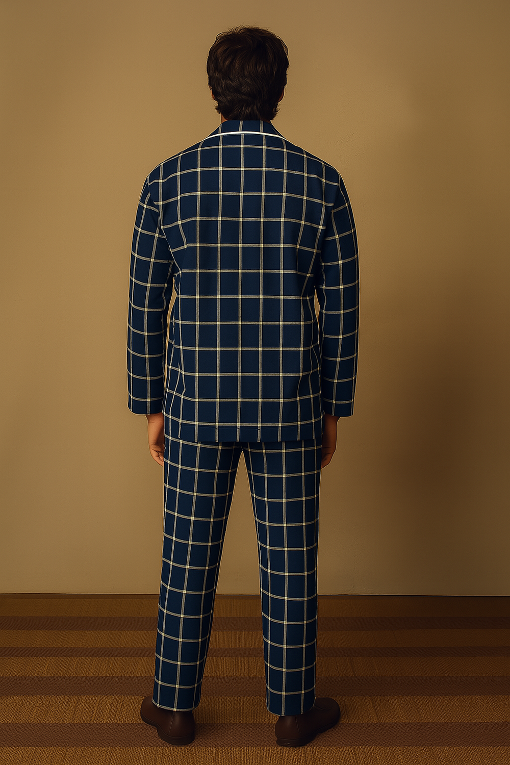 The stylish checked print in classic blue adds a sharp, contemporary edge, while the breathable and flexible lycra fabric ensures all-day ease — whether you're out for a day in the city, lounging in style, or traveling light.