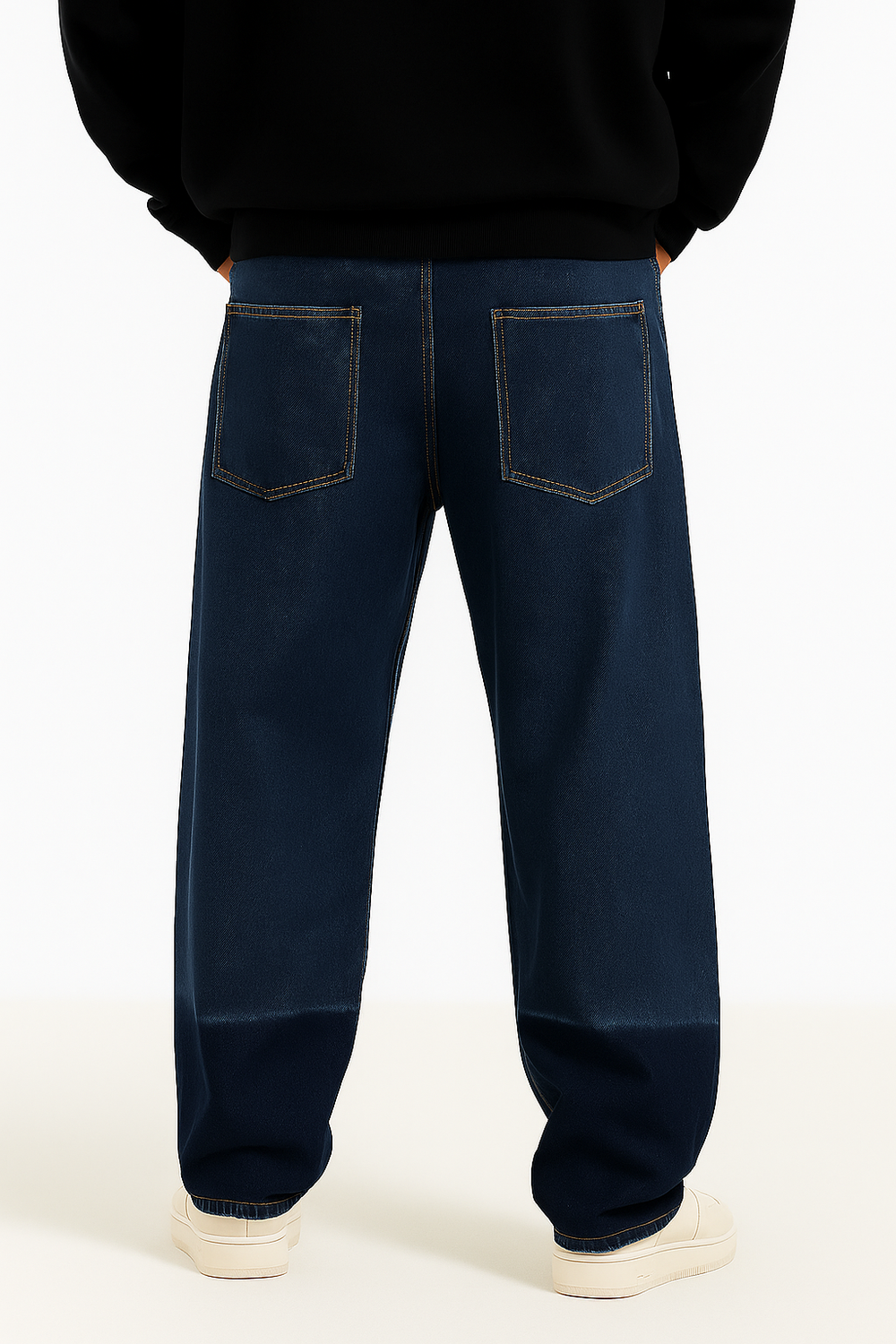 Men's Designer Star Patch Baggy Jeans – Premium Fading | Blue Ultra Soft Denim | Imported Lycra Stretch Fabric