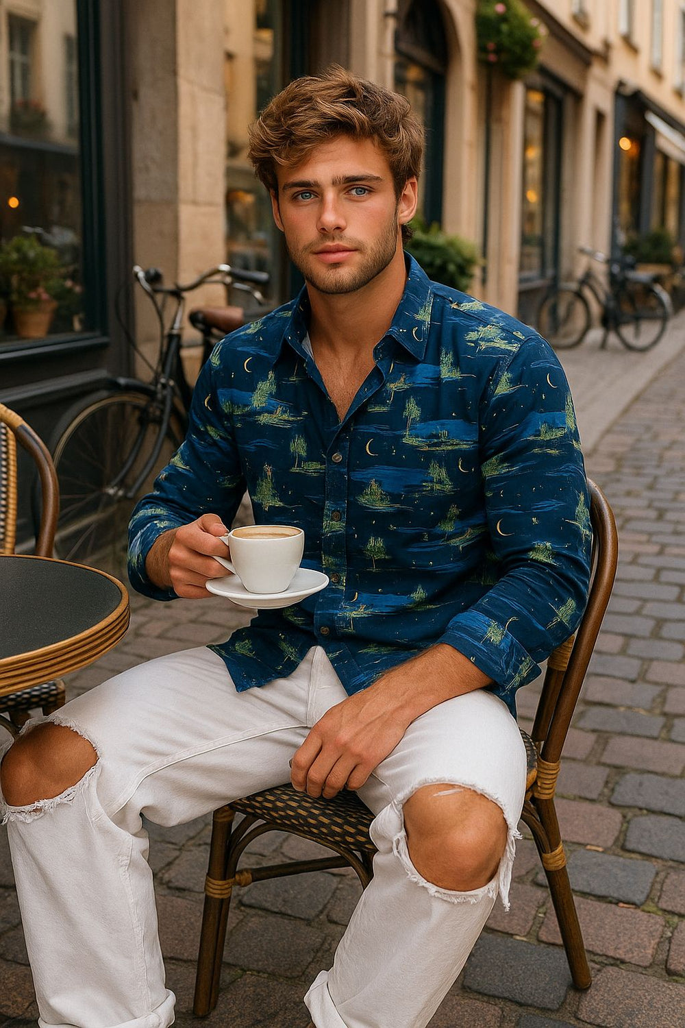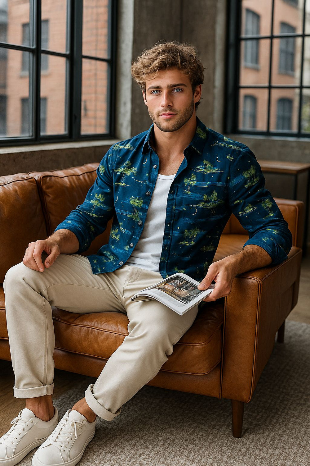 Made from lightweight breathable fabric, it keeps you cool and stylish whether you’re at a beach party, a yacht evening, or a resort getaway. Pair it with white chinos or beige shorts for the ultimate sunset-ready look that turns heads effortlessly.