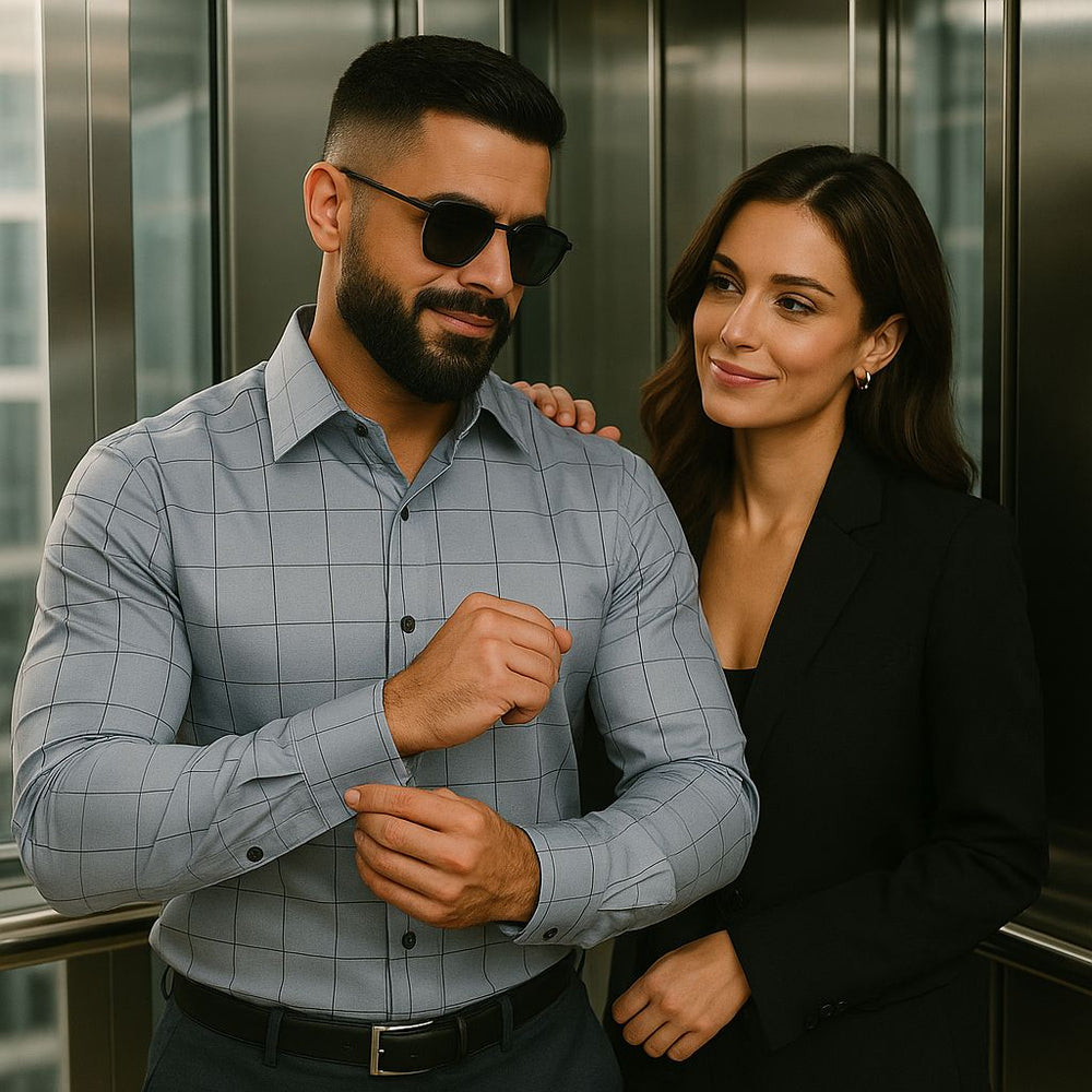 Premium Grey Formal Check Shirt for Men | Slim Fit | Business & Casual Wear